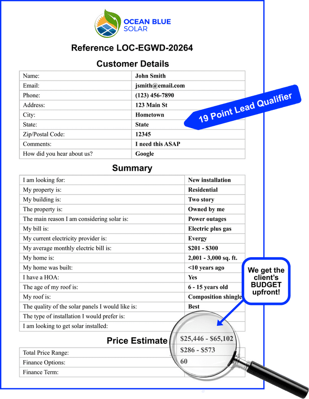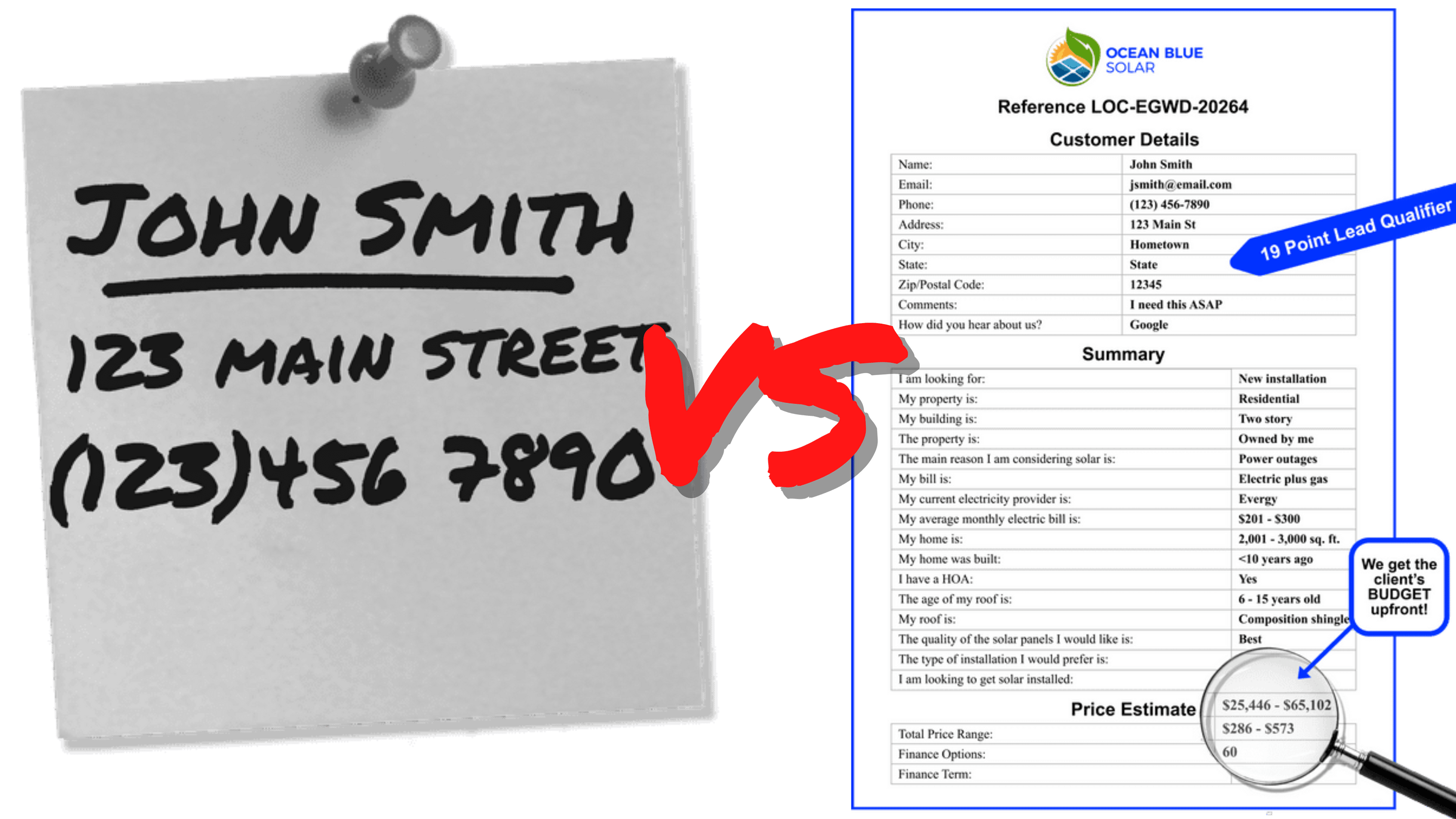 Buying ads on Google or Facebook? Not if you want people who want solar panels RIGHT NOW and not a bunch of "price shoppers" shopping you for the lowest price.